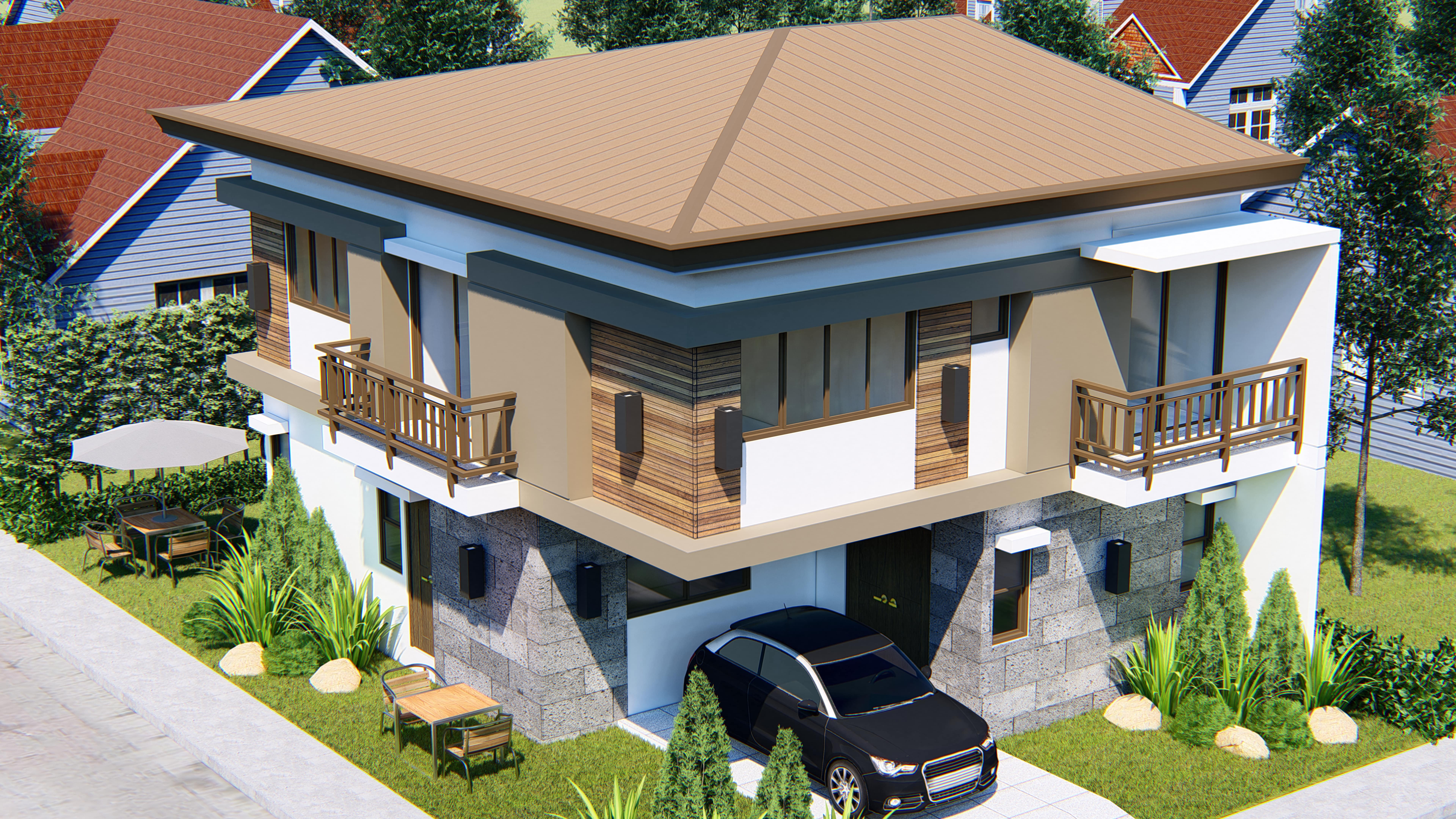 Specifications: 2 Regular Bedrooms, 2 Master’s w/ W.I.C & T&B, 3 Toilet & Bath, 1 Powder room, Living Area, Dining Area, Kitchen Area with Island Counter, Lanai, Family Area, Den / Office Area, Service Area, Porch and Balcony, Storage Room, 2 Carpark